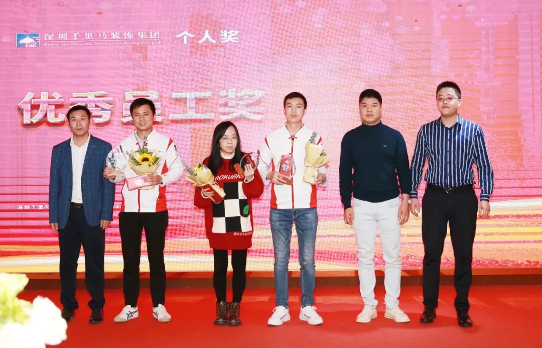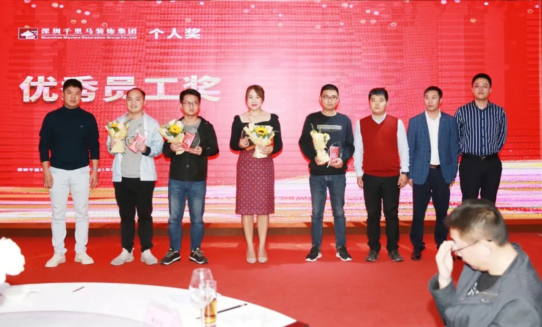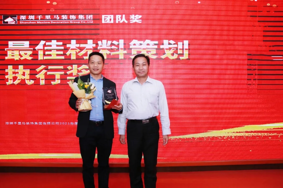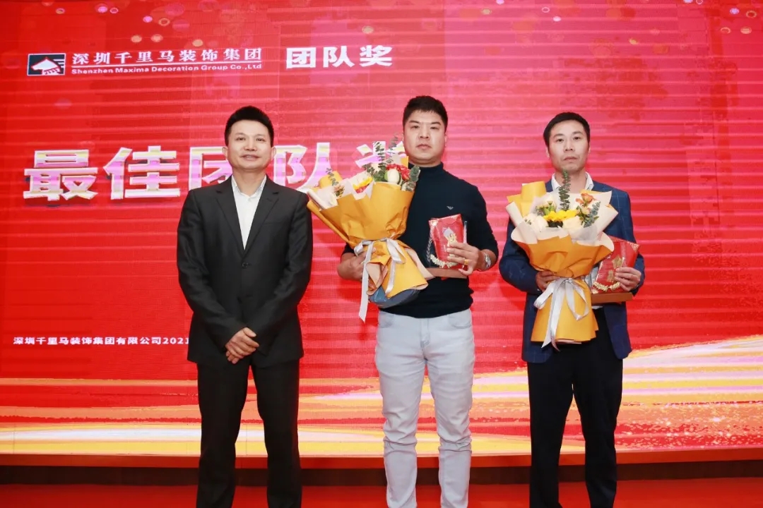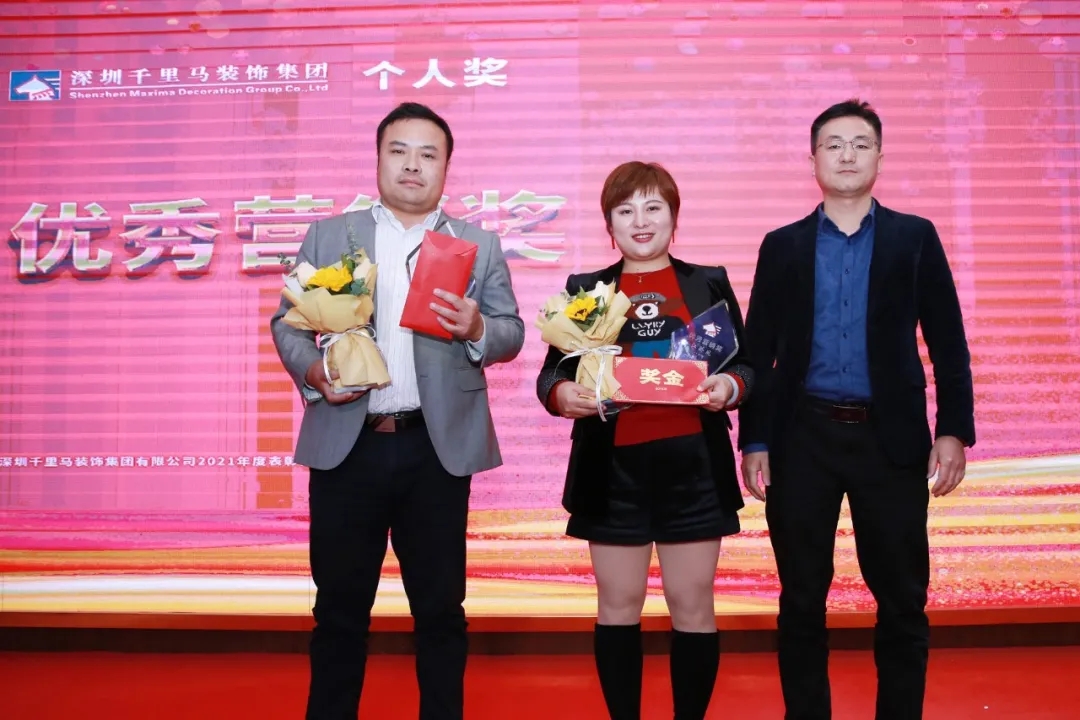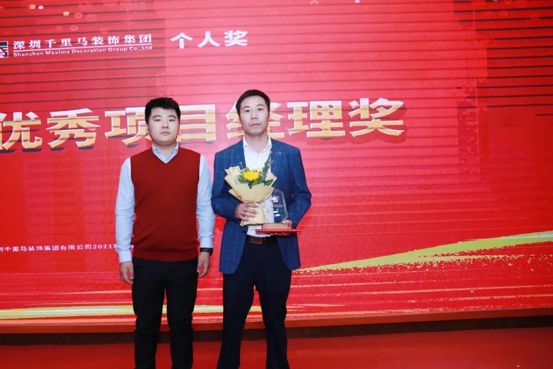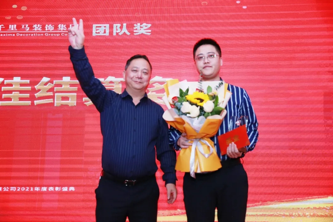 隨后,千里馬裝飾李向東董事長、李文學(xué)總經(jīng)理、朱建國副總經(jīng)理、丁利斌副總經(jīng)理等領(lǐng)導(dǎo)分別為2021年度優(yōu)秀團(tuán)隊(duì)及個人進(jìn)行了表彰頒獎,這其中有公司的新人,也有見證公司歷程的元老,更有一批與公司長期同發(fā)展、共進(jìn)步的項(xiàng)目管理人員,現(xiàn)場全體人員為他們獻(xiàn)上了最熱烈的掌聲,感謝他們?yōu)楣緞?chuàng)造的卓越成績,鼓勵他們?yōu)楣咀龀龈筘暙I(xiàn)。