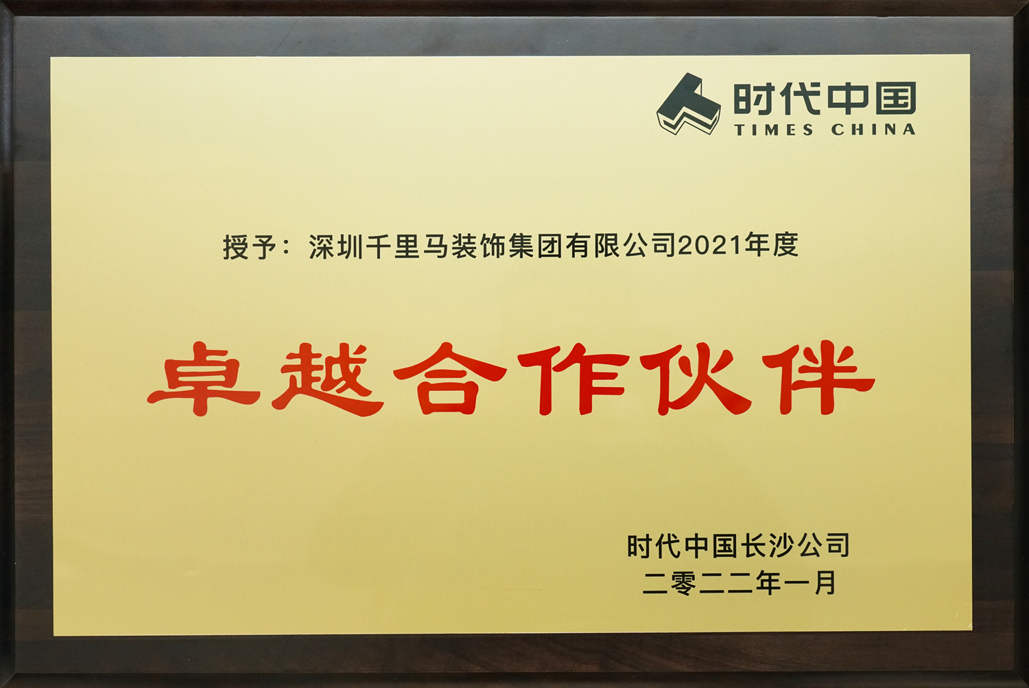 近日,千里馬裝飾集團再次榮獲時代中國“卓越合作伙伴”榮譽獎項,截止2021年,已連續(xù)多個年度榮獲此殊榮。