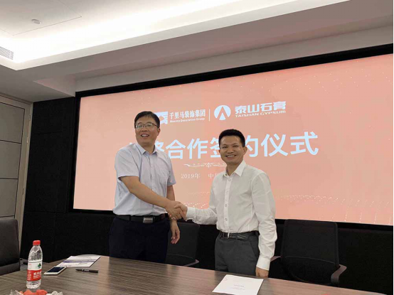 2019年5月13日,千里馬裝飾集團(tuán)與泰山石膏有限公司的戰(zhàn)略合作簽約儀式在千里馬裝飾集團(tuán)公司總部深圳舉行。