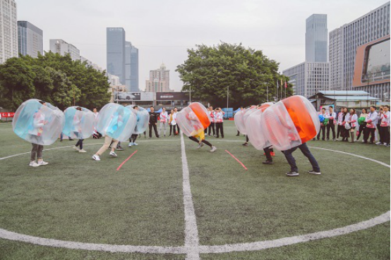 形式多變的趣味運(yùn)動(dòng)項(xiàng)目讓大家在歡笑中體驗(yàn)協(xié)作精神。兩人三足各隊(duì)6位員協(xié)作共進(jìn),奮力奔向終點(diǎn);碰撞透明球項(xiàng)目中,詼諧的比賽動(dòng)作引得觀眾開(kāi)懷大笑;出手快,力量狠,角度準(zhǔn)的撕名牌大戰(zhàn)燃起了各團(tuán)隊(duì)的比賽斗志。趣味比賽讓大家加懂得,只要擁有熱愛(ài)運(yùn)動(dòng)的精神和樂(lè)觀的心態(tài),生活中隨處可見(jiàn)的簡(jiǎn)單道具都能成為我們鍛煉身體的工具和快樂(lè)的源泉。
