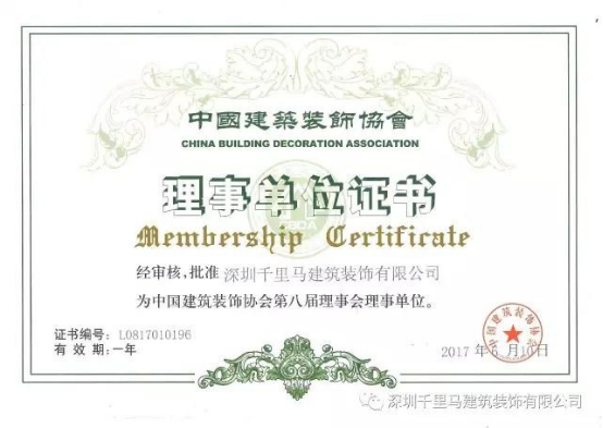 天道酬勤,有志者事竟成。在千里馬公司多年堅(jiān)持下,6月,終于獲得了中國建筑裝飾協(xié)會的認(rèn)可,成為新晉理事單位成員。
