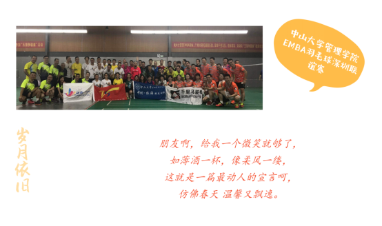 比賽中發(fā)揚了“友誼第一、比賽第二”的體育精神,各位參賽校友走出校門,在社會上摸爬滾打,至今已有十幾載,歲月在各自的臉龐心間也已印刻出了不同的滄桑質(zhì)感,但只要走上賽場,沉睡于靈魂中的熱血激情就被喚醒,臉上輕松的笑容、場上矯健的身姿,像極了十幾年前穿著校服的一張張青澀、純真的少年,尤其是中山大學(xué)管理學(xué)院EMBA黃埔32期動動隊,一個班組成了一支實力不凡的10人隊伍,在比賽過程中團結(jié)合作、默契配合,是“奮斗、愛、分享”精神最生動的詮釋和體現(xiàn)。曾經(jīng)校友相聚于球場,便將半世滄桑拋腦后,一朝何妨作水仙。